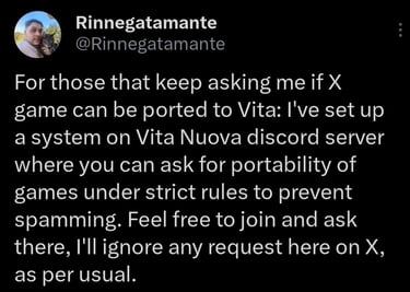 PS Vita Bounties are back and everybody is super happy. I have already talked about it in this article, but in the nutshell the process is very simple - You just need to go to this KoFi page and make a donation in a value you want to create a bounty for. This will serve as an encouragement for a developer to start working on that specific game. Check this for all the closer details, but before you going to do that we have one important change. Rinnegatamante has introduce brand new system on Vita Nuova Discord