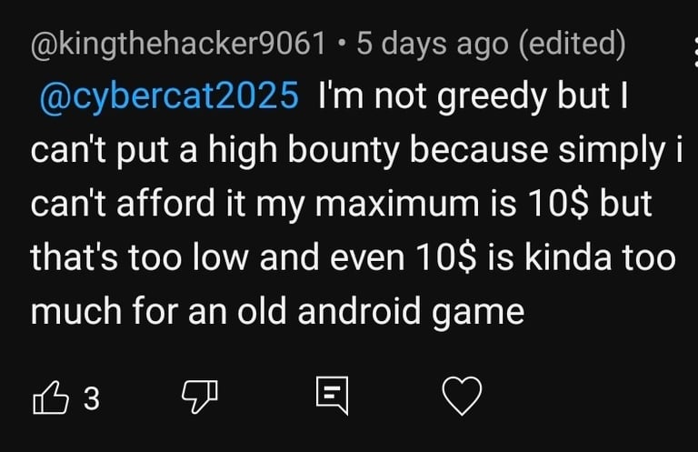 I told the guy who made it that a bounty is a way to go. His answer? ''My max is $10 but that's too low and even $10 is kinda too much for an old android game''. If this is also your mindset just say goodbye to the good old CoD Black Ops Zombies PS Vita port. Is my $30 too much or too low for AvP Evolution? I think it is exactly the amount that needs to be there. It is an active bounty and that is what matters. What comes next is in Gods hands